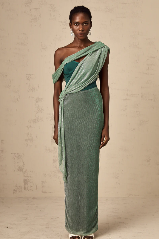 Diamond Embellished Co-Ord with Maxi Skirt - Yellow