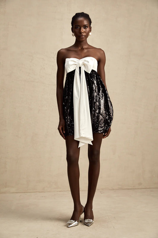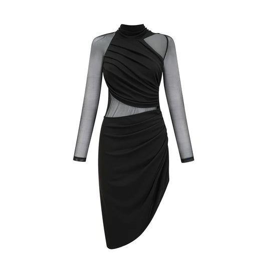 Draped Cut-Out Mini Dress With Sculptural Buttons – Black
