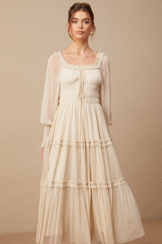 Diamond Flower Accent 2 Piece Set With Long Sleeves Top And Maxi Skirt - White