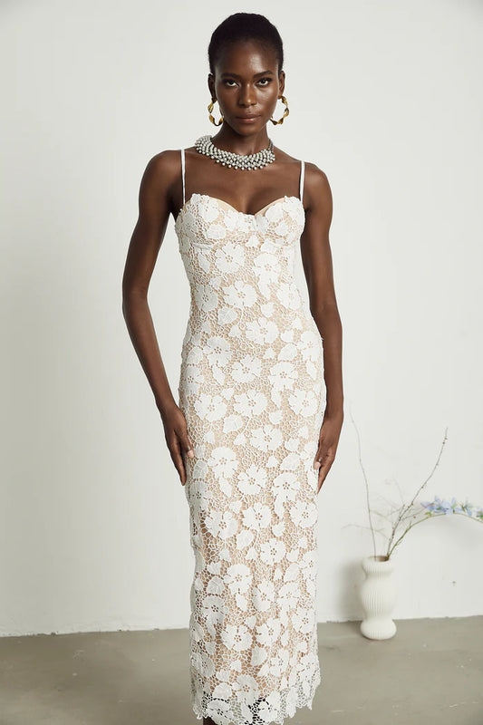Sequin Lace Mini Dress With Structured Shoulders – White