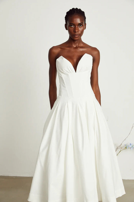 Structured Corset Mini Dress With Folded Collar-style Neckline – White