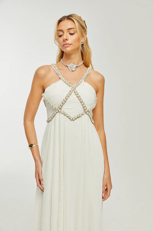 Diamond Embellished Co-Ord with Maxi Skirt - White