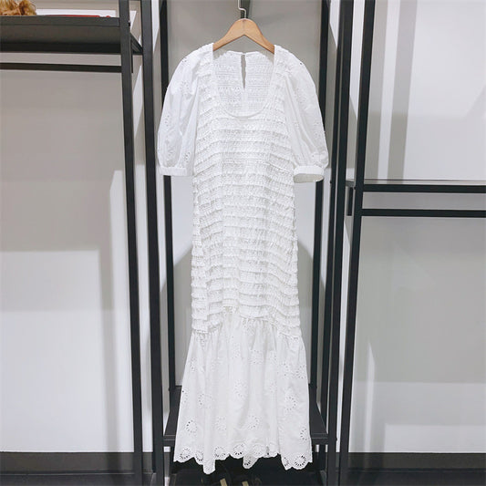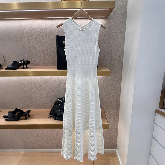 Long Silhouette Dress With Lapels And Crystal Detailing - White