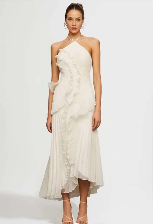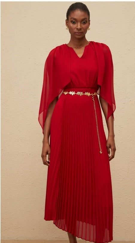 Draped Cut-Out Gown With Gathered Detailing – Red