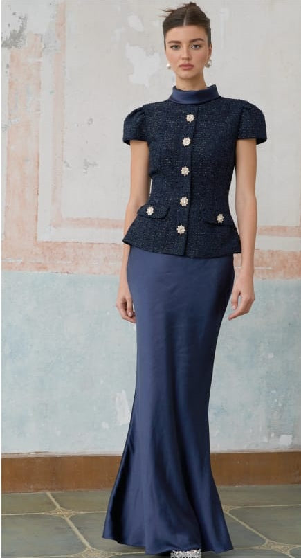 Satin Maxi Pencil Skirt with Lace Corset Waist – Ivoire