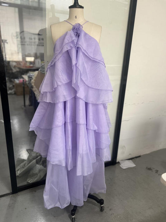 Crystal-Embellished Strapless Gown with Choker – Gray