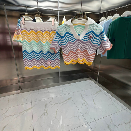 Crew Neck Sleeveless Knitted Vest Skirt Set