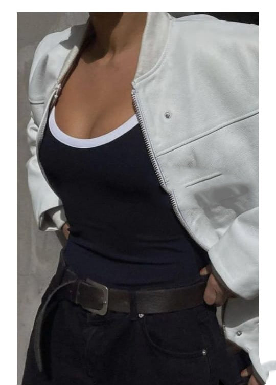 Kleidung Merkmale: Rippenstruktur, kontrastierende Rohrleitungen, Hochgeschnittenes Modell, minimalistisches Emblem auf der Brust