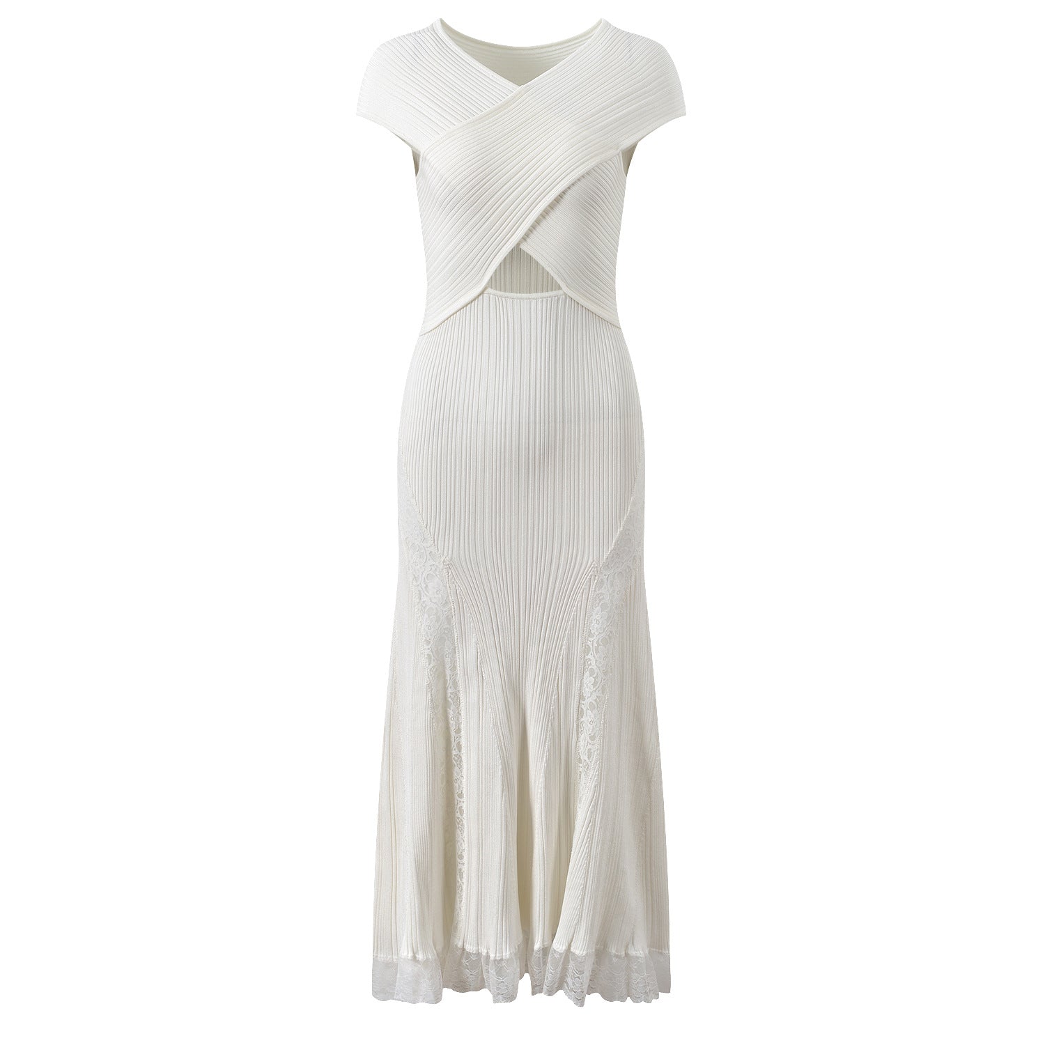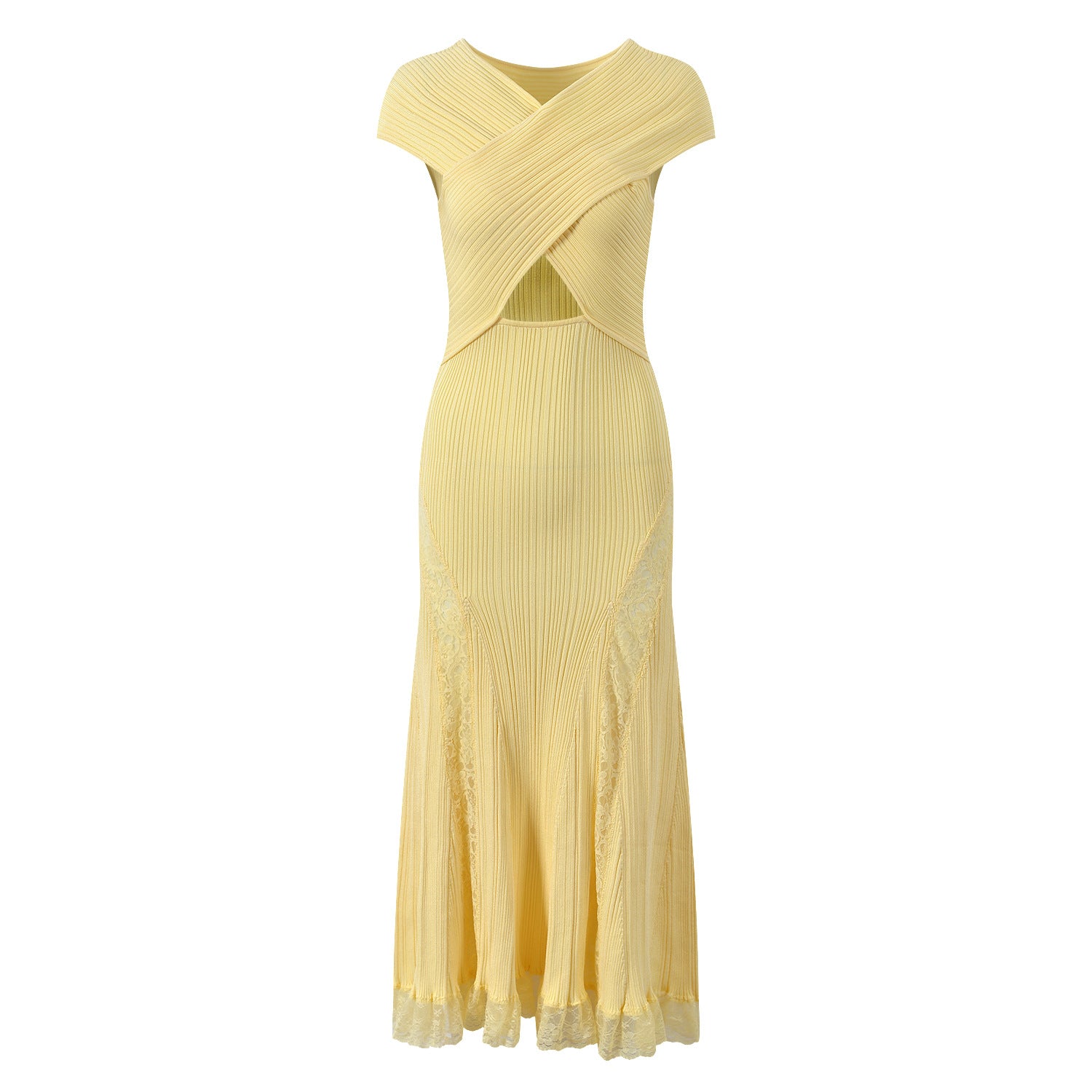 Cross Kragen hohles Spitzenspleißen schlankes Kleid