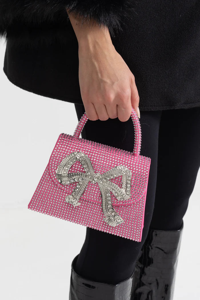 Funkelnde Strasskupplung mit dekorativem metallischen Bogen - Pink