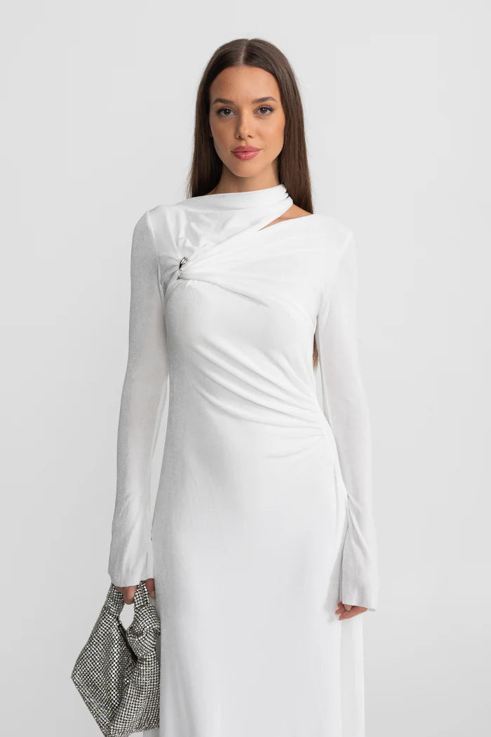 Draped Maxi Dress with Cut-Out and Elegant Detail - White