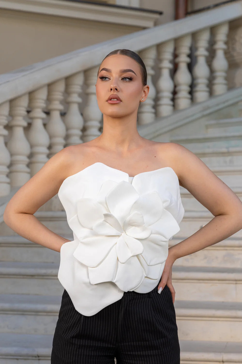 Indulge in luxury with our stunning Sleeveless 3D Floral Tank Top in black. Showcasing intricate 3D floral details, this tank top is both elegant and chic. The sleeveless design and zipper at the back provide convenience while the elastic ensures a perfect fit.