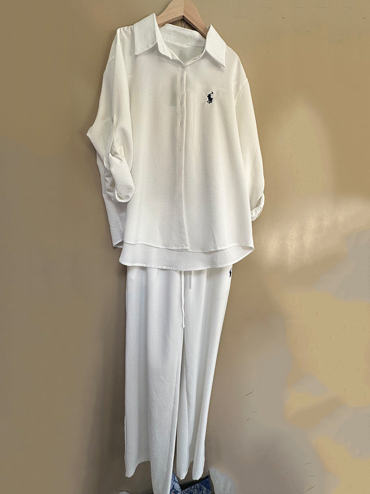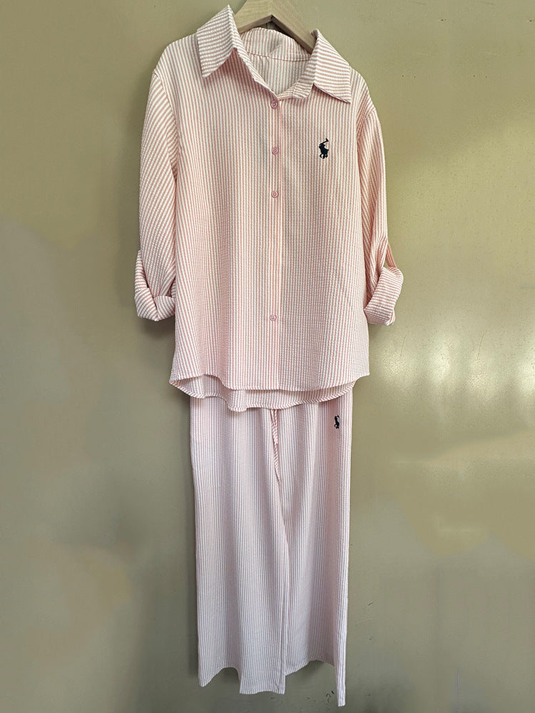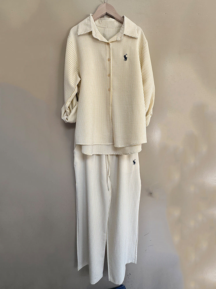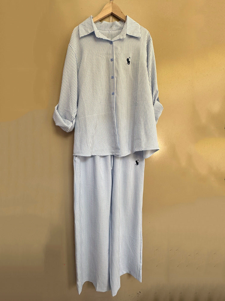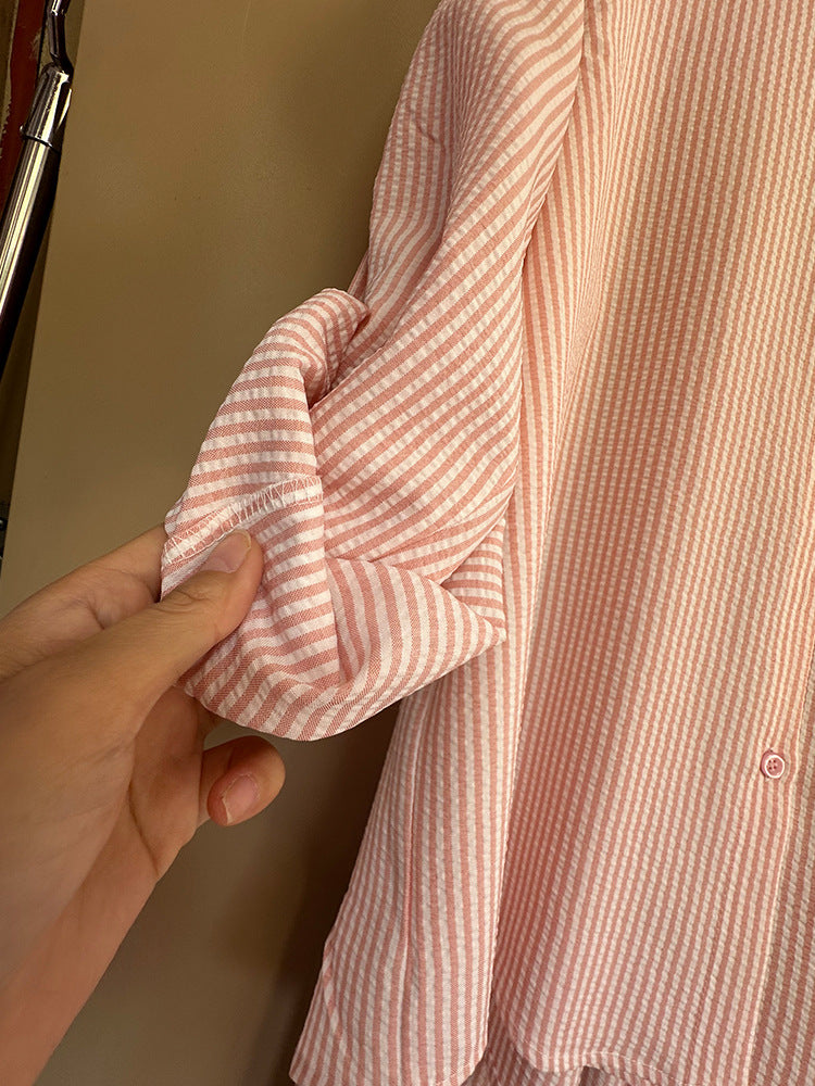 Ensemble de correspondance de chemises lâches en coton et en lin à rayures à rayures pour femmes