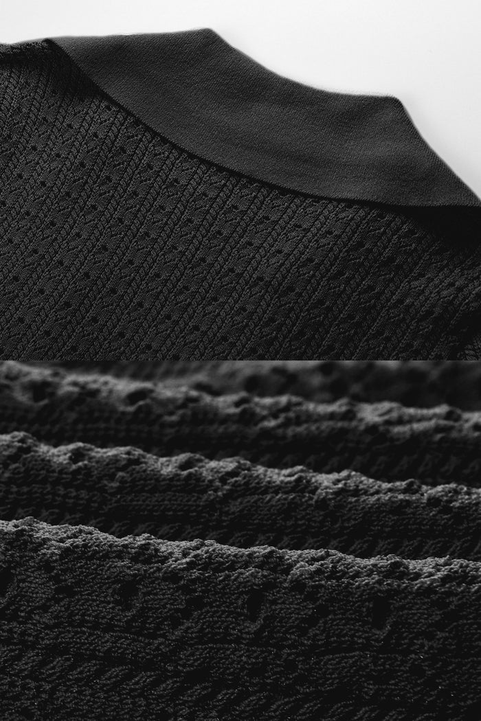 Black Knit Mini Dress with Peplum Waist and Gold Button Detail