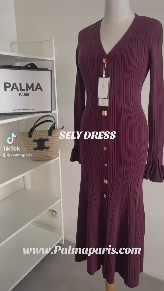 Robe de luxe en maille fine et ajustée à simple boutonnage