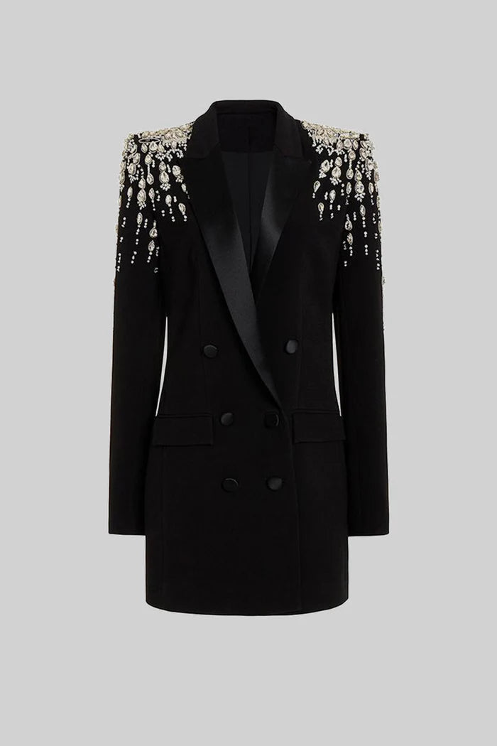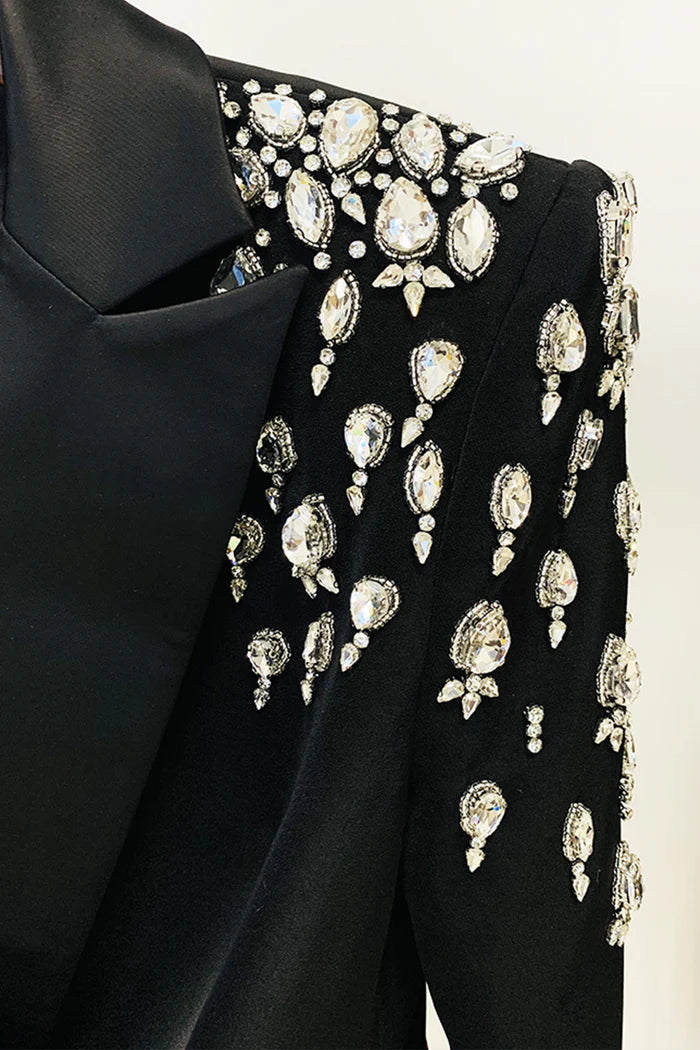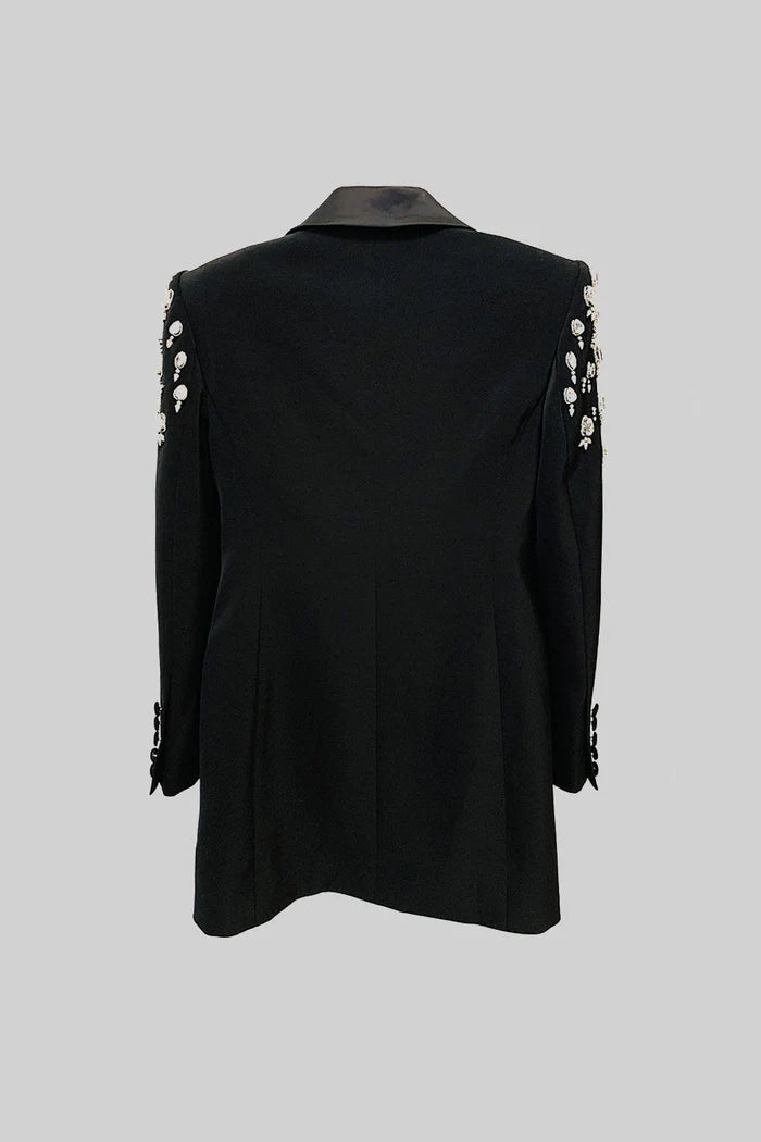 Black Elegant Blazer With Diamond Embellished Shoulders