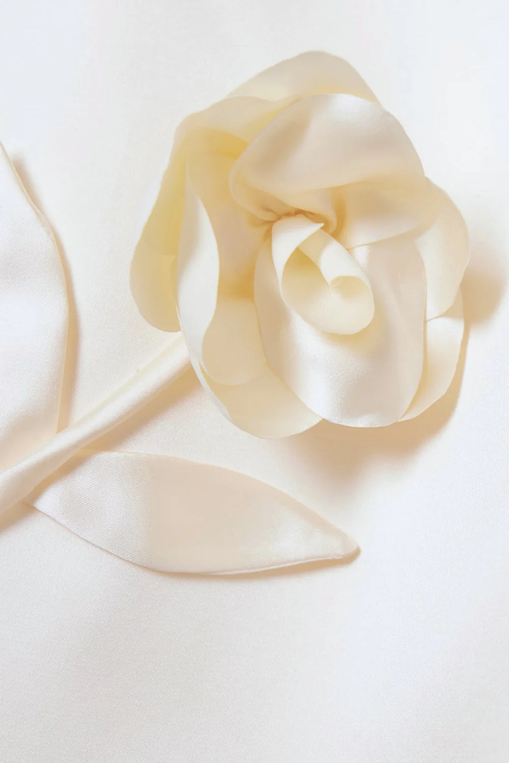 Satin Pencil Skirt with 3D Floral Appliqués - Ivoire